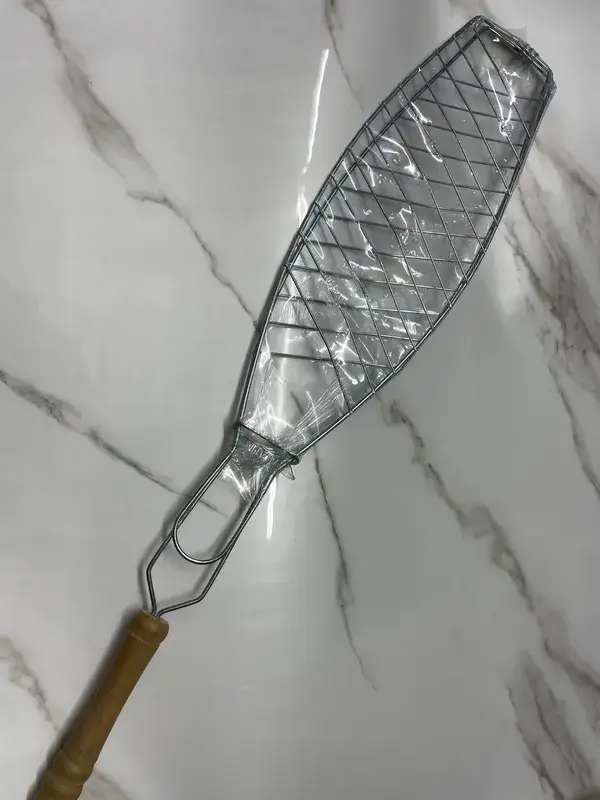 רשת צליה לדגים ידית עץ