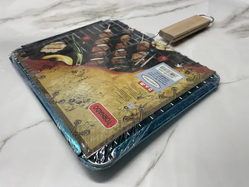 רשת צליה מרובעת בשר/כבד ידית עץ