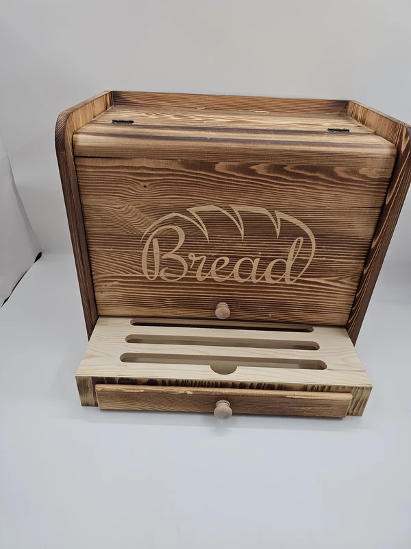 ארגז לחם מעץ עם מגירת חיתוך לפירורים