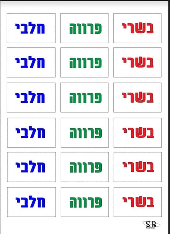 36 מדבקות בשרי חלבי פרווה צבעוניות