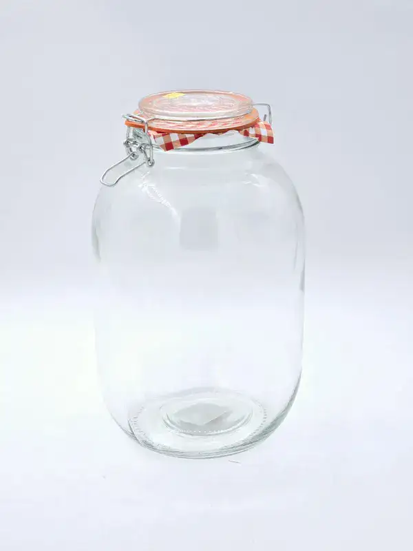 צנצנת גדולה אטומה הרמטית עם גומיה כתומה.