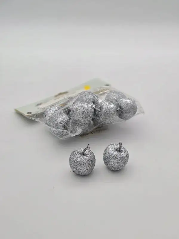 12 תפוחים נוצצים כסף לעיצוב שולחן