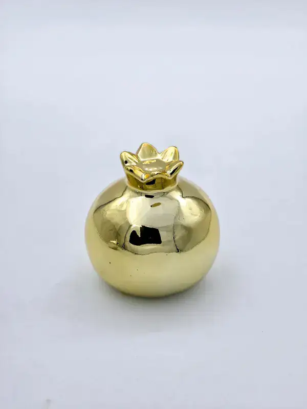 רימון זהב מחרס לעיצוב מרכז שולחן 9 ס"מ