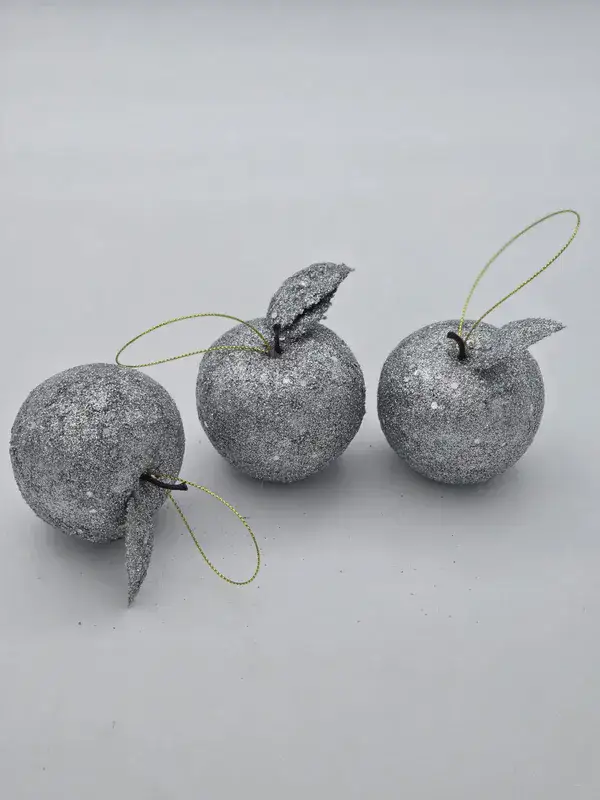 3 תפוחים כסף נוצצים לעיצוב שולחן