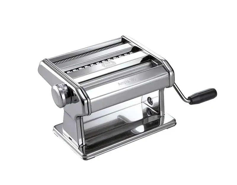 מכונת פסטה Ampia 150 מבית Marcato – לרידוד וחיתוך פסטה ברמת דיוק מקצועית! מכונת הפסטה דגם Ampia 150 של Marcato מאפשרת רידוד וחיתוך בצק ברמת דיוק גבוהה עם אפשרות ל-10 רמות עובי שונות (בין 0.6 מ"מ ל-4.8 מ"מ). המכונה כוללת רולרים לחיתוך ספגטי (1.5 מ"מ) ופטוצ’יני (6 מ"מ), ומגיעה עם מלחציים להידוק בטיחותי לשולחן לנוחות עבודה מקסימלית. מוצר זה כולל חוברת הדרכה מקיפה ו-10 שנות אחריות על פגמי ייצור.